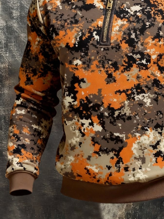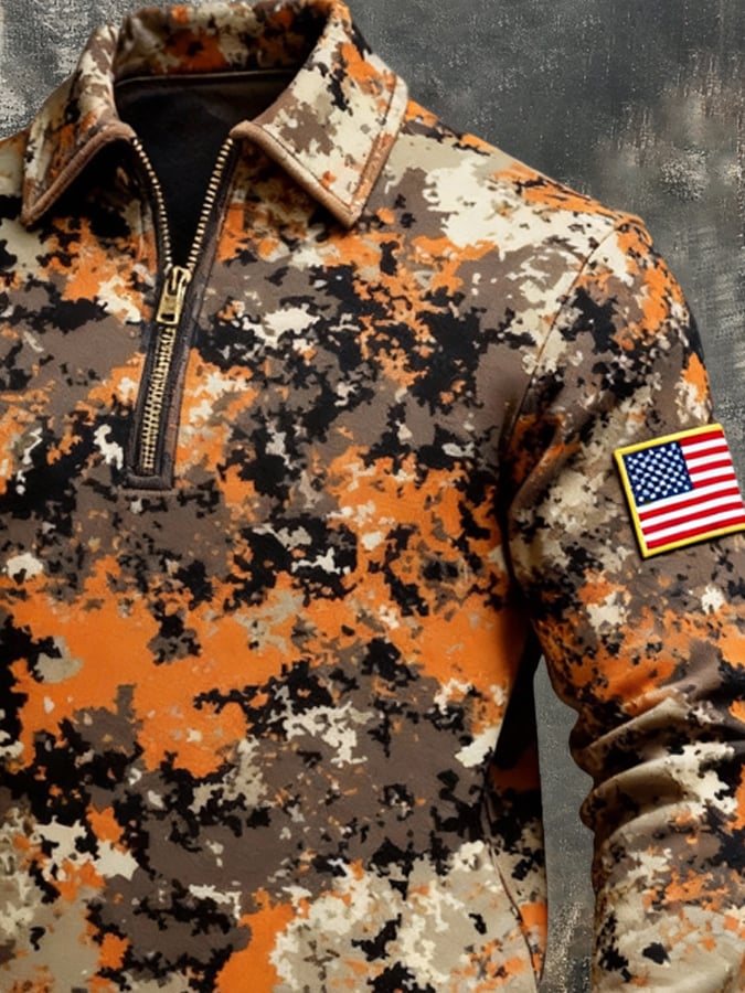 Men's Retro Camouflage American Flag Patriot Zip-Up Hoodie