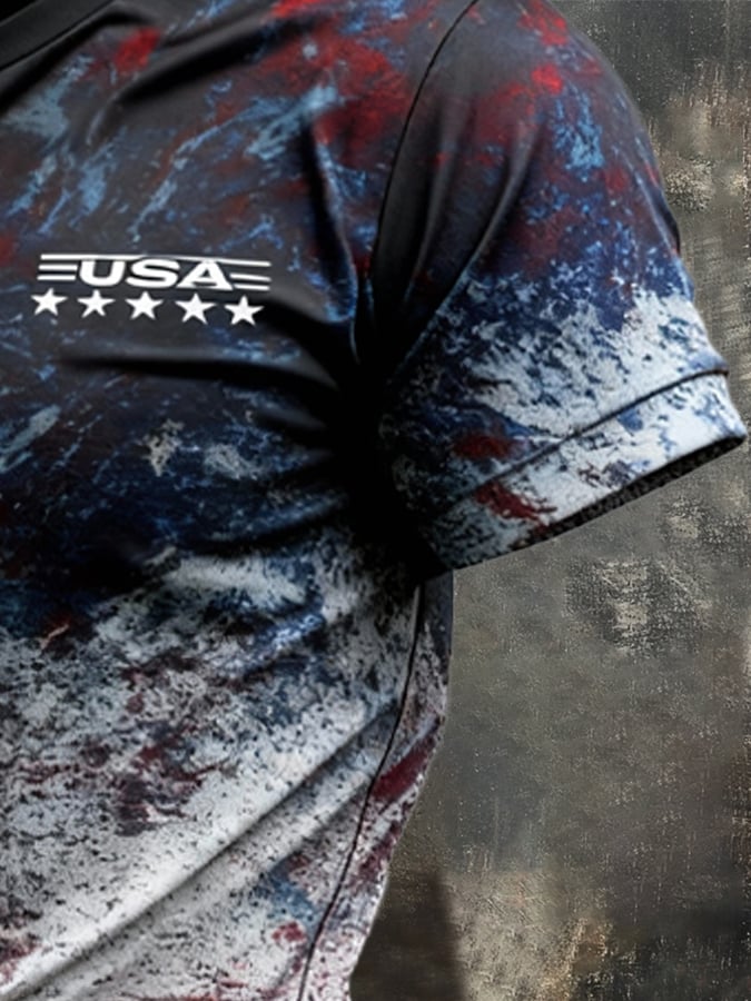 Men's Retro Patriot Camouflage Patchwork T-shirt