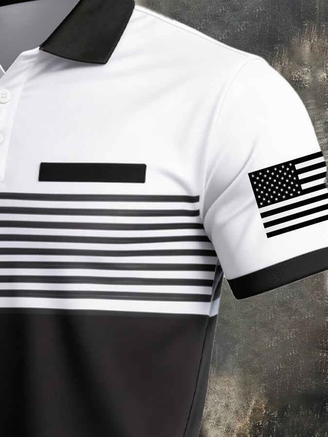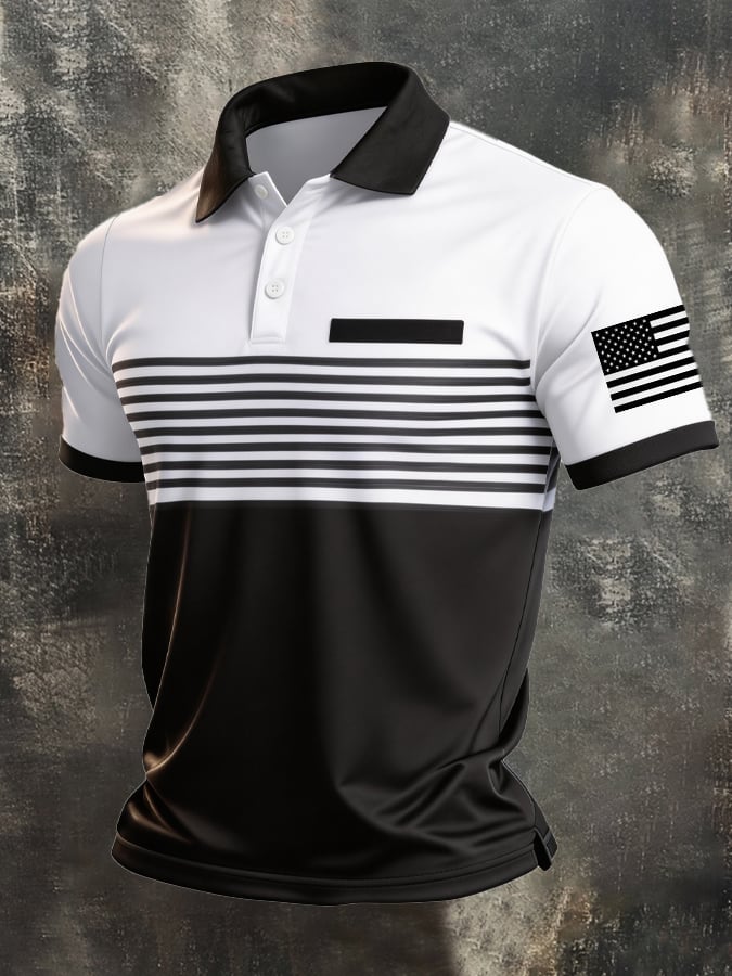 Men's Retro Patriotic Color-Block Short-Sleeve Polo Shirt