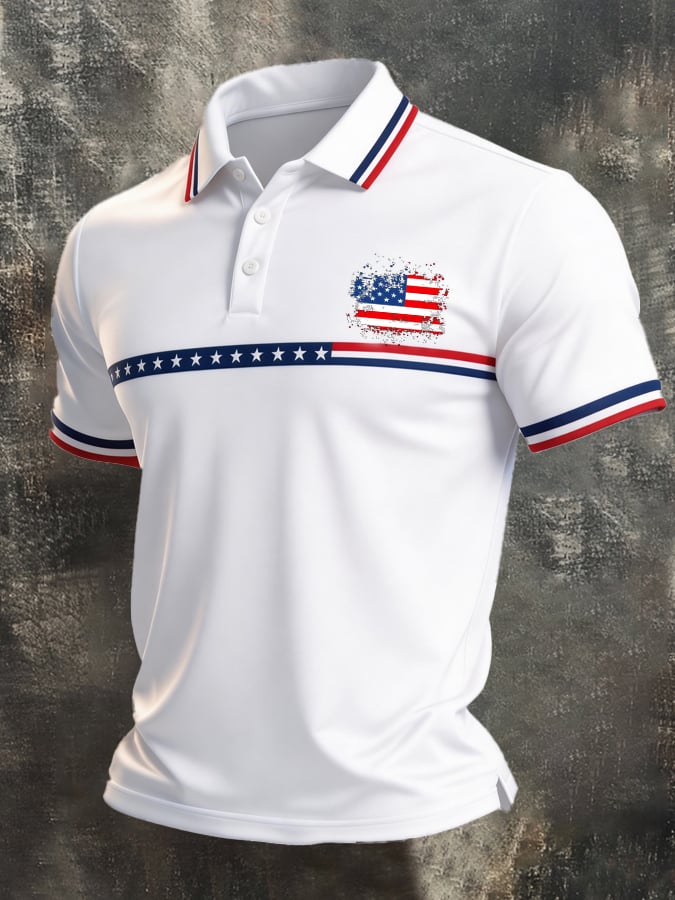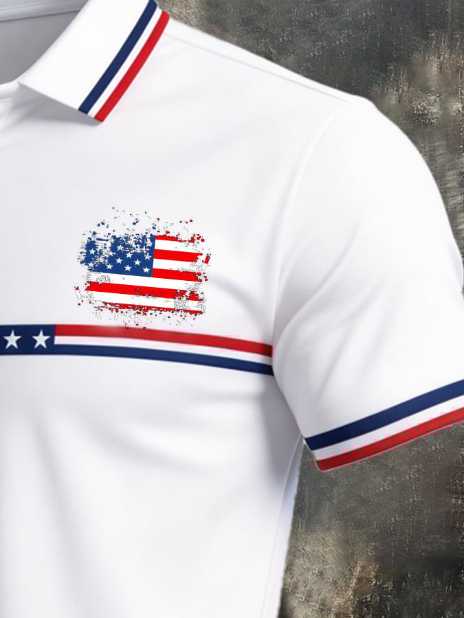 Men's Retro Patriotic Color-Block Short-Sleeve Polo Shirt