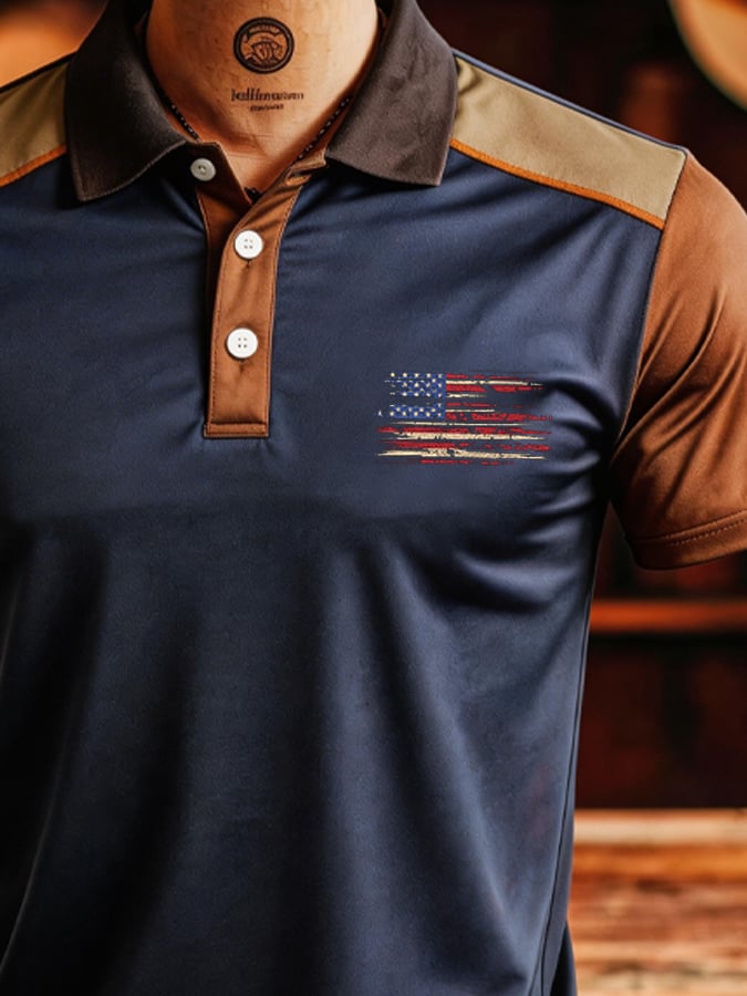 🚀Men's Retro Patriotic Color-Block Short-Sleeve Polo Shirt