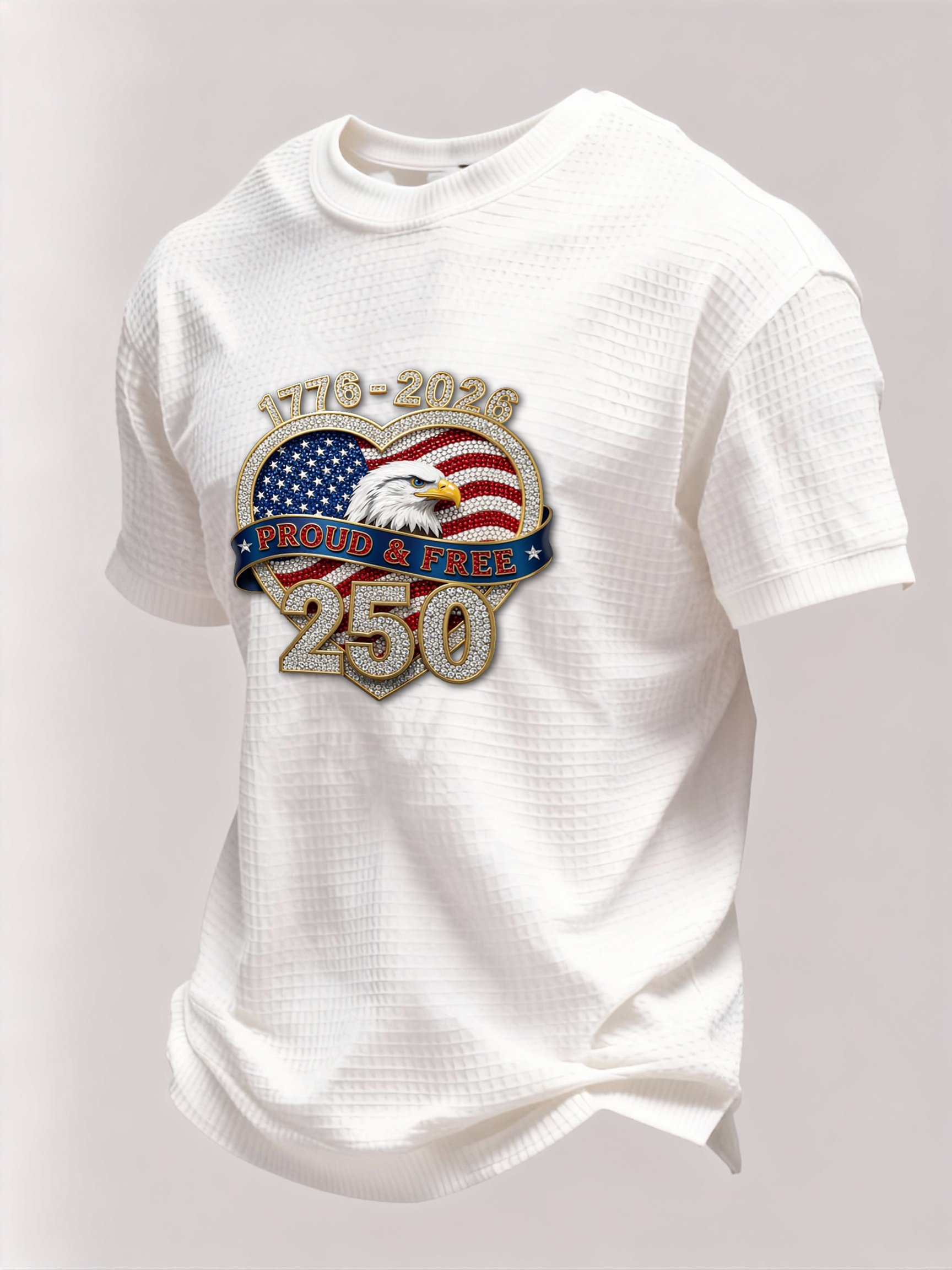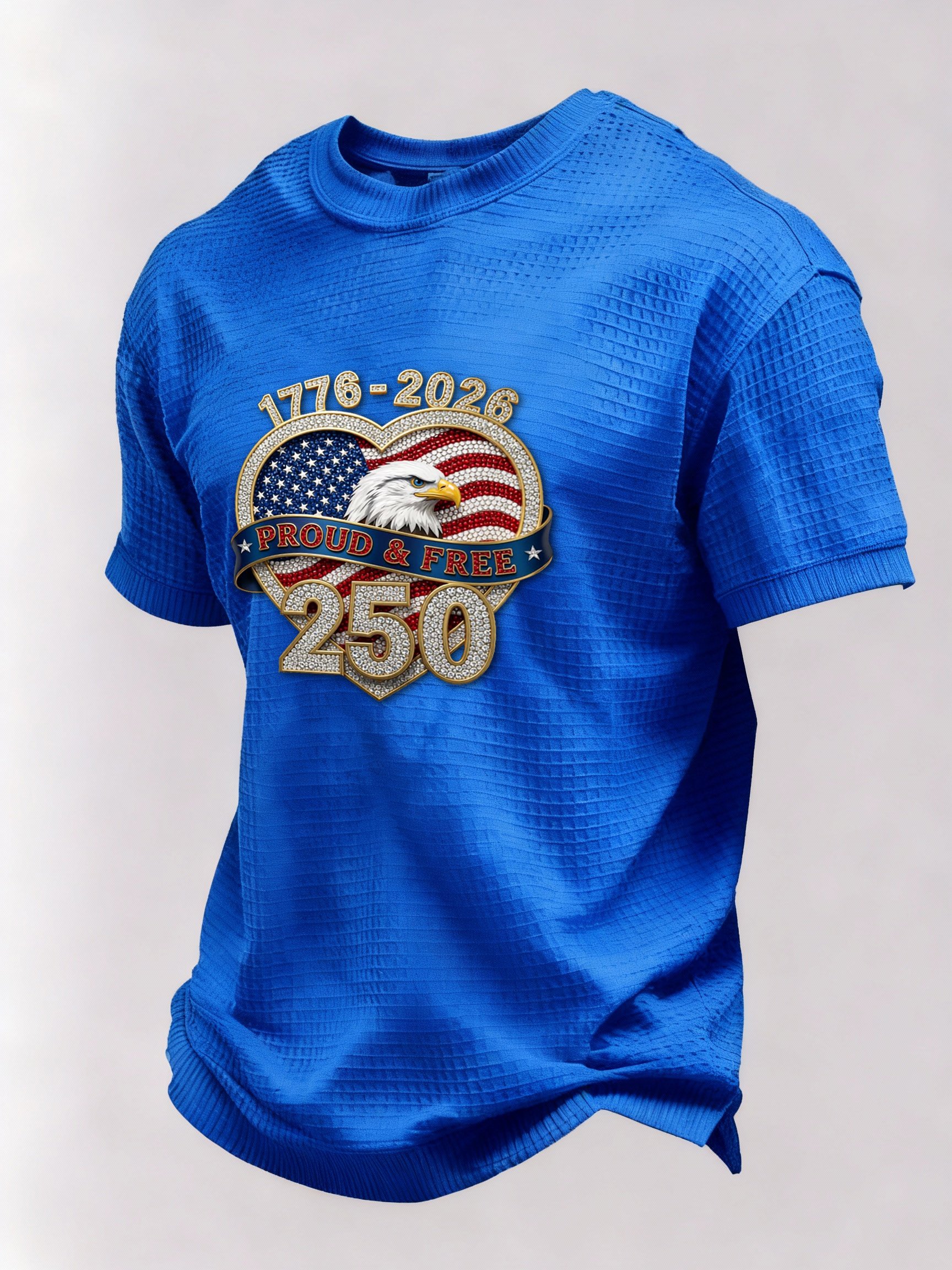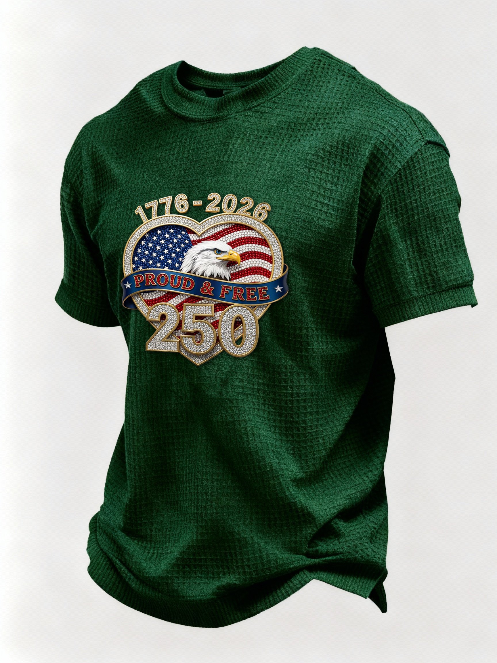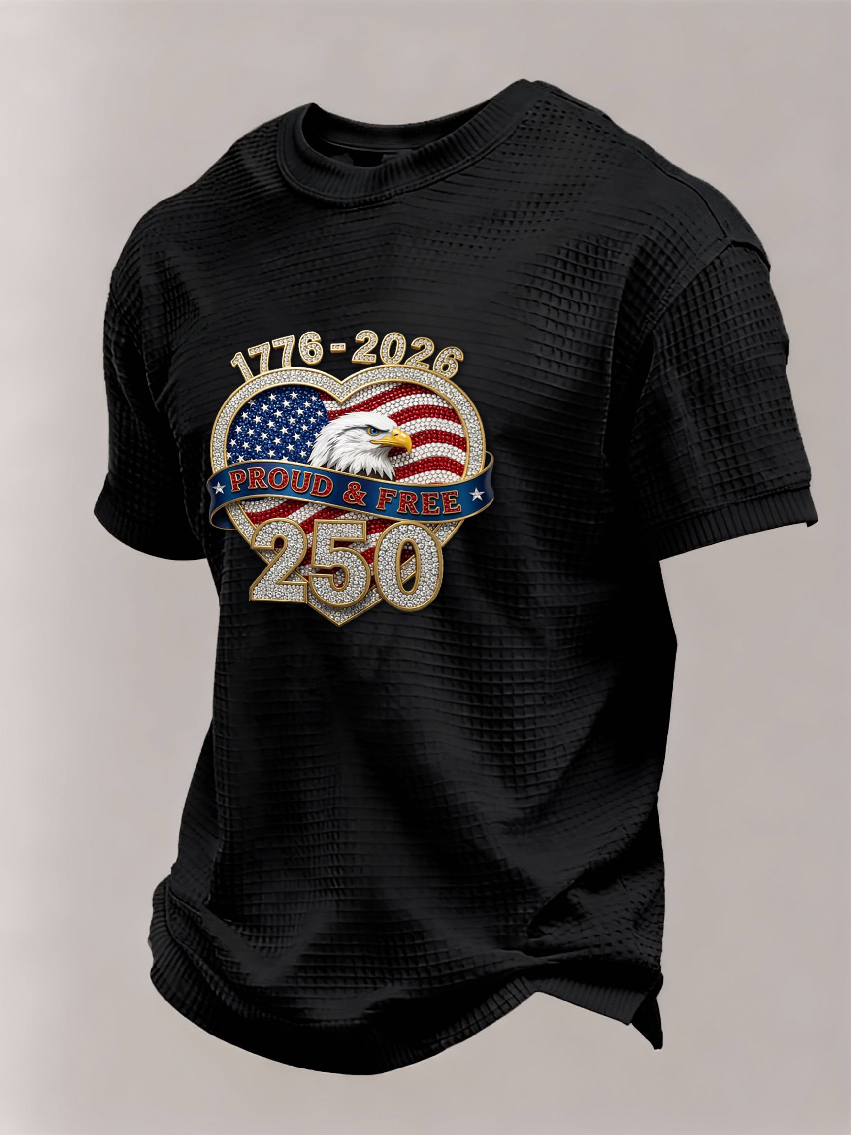 Men’s USA 250th Anniversary Embroidered Print Short Sleeve Waffle T-Shirt