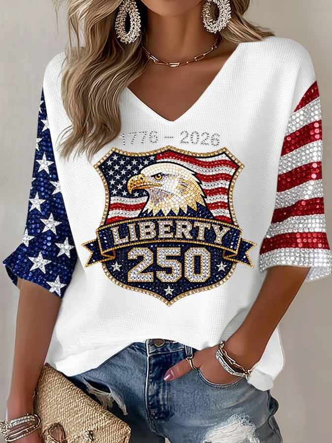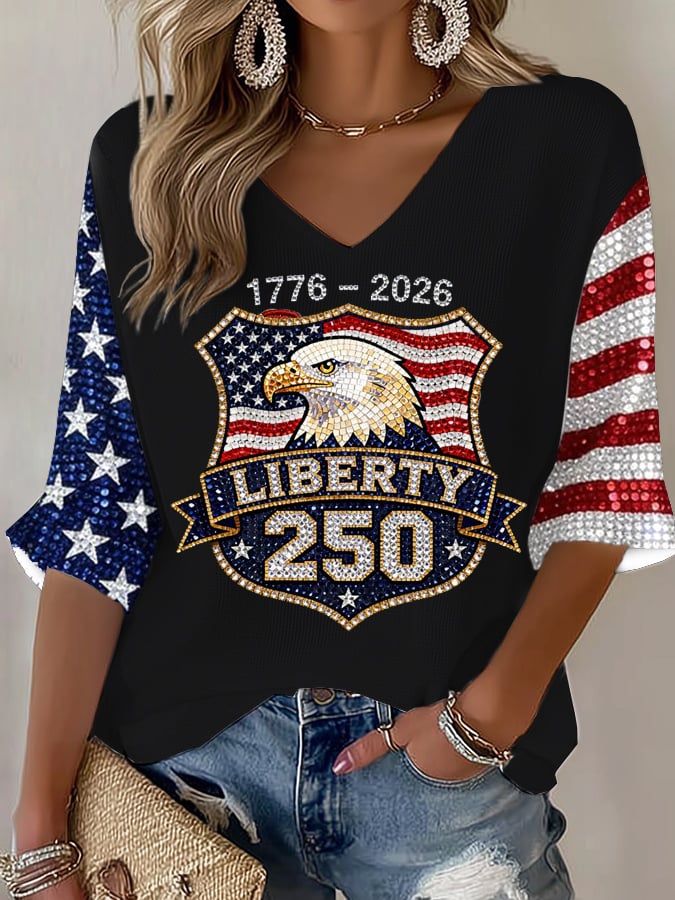 Women's 250th Anniversary Of The United States Printed V-Neck Top