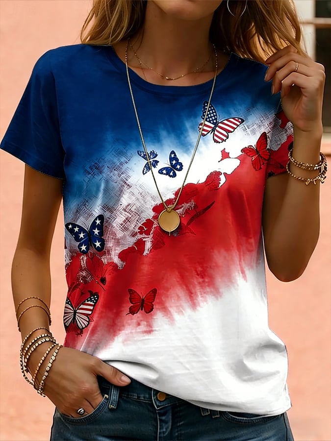 Women'S Casual American 250th Anniversary Printed Short-Sleeve T-Shirt