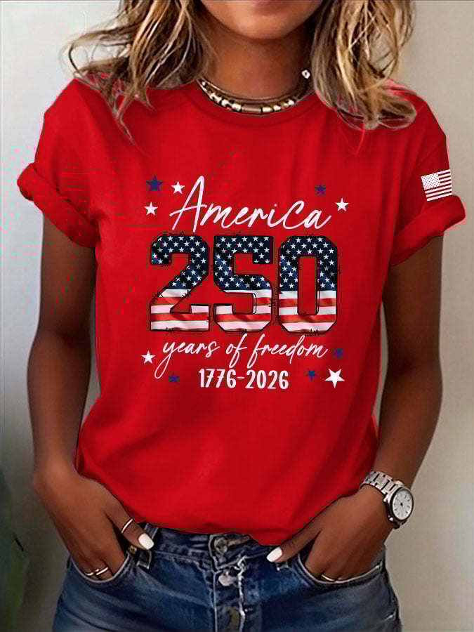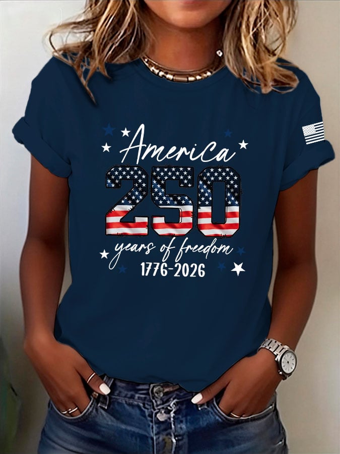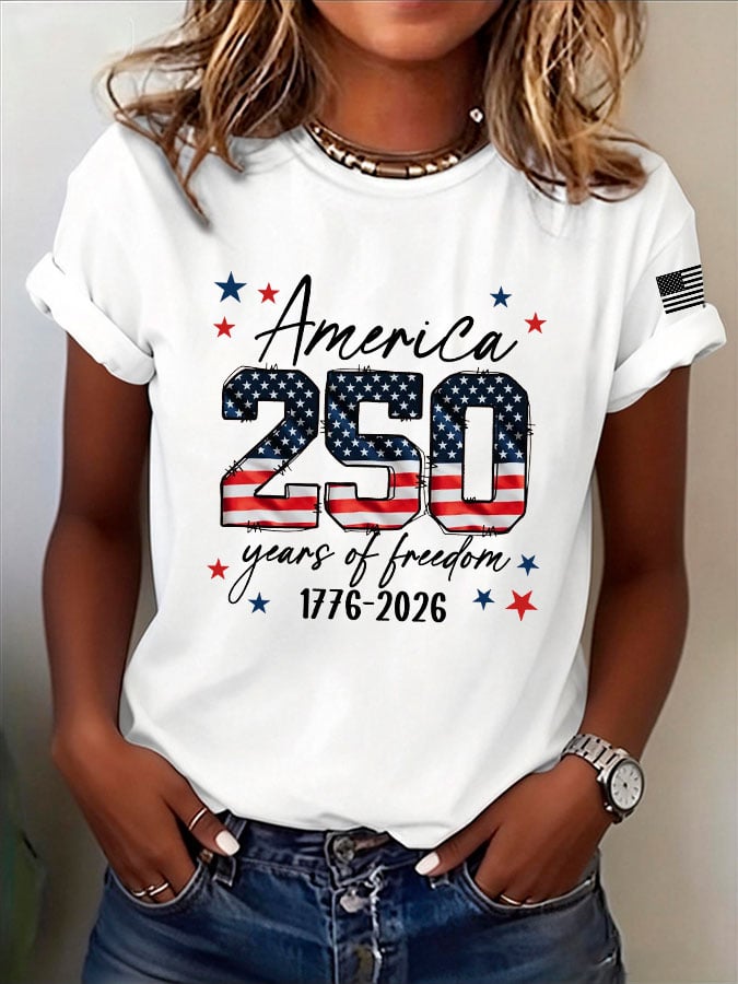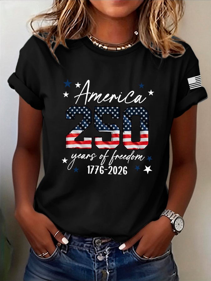 Women's Casual USA 250th Anniversary Print Short-Sleeve T-Shirt