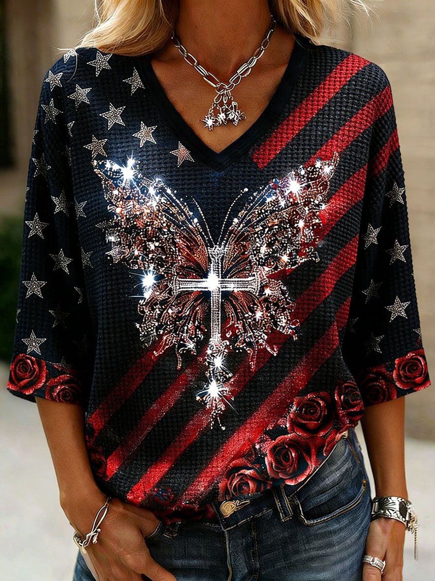 Women's Faith in America 250th Anniversary Waffle Texture Three-Quarter Sleeve T-Shirt